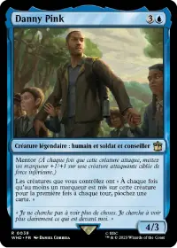 Danny Pink est un excellent moteur de pioche dans une stratégie autour des marqueurs. Chacune de vos créatures vous fait piocher une carte lorsqu'elle reçoit un ou des marqueurs pour la première fois lors d'un tour.
