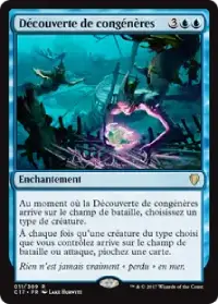 Découverte de congénères est une carte iconique des jeux centrés autour d'un type de créature. Elle nous permet de piocher à chaque zombie qui arrive sur le champ de bataille et pour chaque zombie qui attaque. En plus de l'avantage en cartes, nos créatures deviennent très imposantes grâce à notre Commandant.