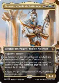 Temmet, volonté de Naktamon est le Commandant de ce deck. C'est une 4/4 avec la vigilance et menace pour 5 manas. Il vous fait piocher et défausser une carte à chaque fois que vous attaquez, y compris s'il n'est pas lui-même attaquant.