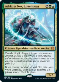 Adrix et Nev, jumemages double le nombre de jetons que vous créez, y compris celui créé par votre Commandante. Vous bénéficiez donc de 2 5/5 pour attaquer, et les éventuels capacités d'arrivée en jeu du permanent copié se déclenchent une fois de plus.