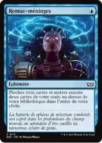 Remue-méninges est un classique parmi les sorts de pioche. Dans ce deck, pour un simple mana bleu en éphémère, il nous permet de donner +3/+3 à l'ensemble de nos zombies grâce à Temmet, pour complètement renverse le cours du combat.