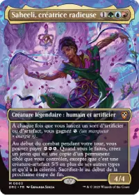 Saheeli, créatrice radieuse est la Commandante de ce deck. C'est une 4/4 pour 4 manas qui vous fournit 2 marqueurs énergie à chaque fois que vous lancez un sort d'artificier ou d'artefact.