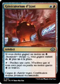 Génératorium d'Izzet vous donne une énergie supplémentaire à chaque fois que vous en gagnez et vous permet de piocher une carte en s'engageant à chaque tour ou vous avez dépensé au moins 4 énergies, ce qui devrait arriver très souvent.