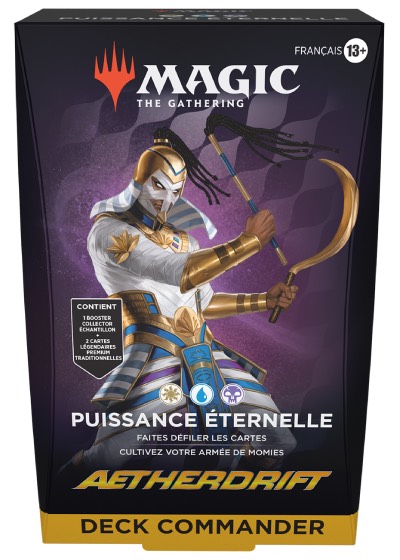 Retrouvez ici la liste du deck Puissance Éternelle. Pour visualiser les cartes telles que vous les trouverez dans vos decks, consultez la page de l'édition Commander Aetherdrift.