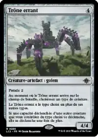 Trône errant double toutes les capacités déclenchées de vos dragons, y compris celle de votre Commandant, quand il arrive en jeu et quand il attaque !