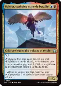 Balmor, capitaine mage de bataille donne +1/+0 et le piétinement à toutes les créatures que vous contrôlez à chaque fois que vous lancez un sort d'éphémère ou de rituel, permettant ainsi à vos jetons d'infliger de nombrex dégâts.