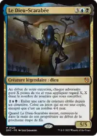 Le Dieu-Scarabée est un excellent moyen de rentabiliser nos jetons zombies en drainant les poitns de vie de tous nos adversaires au début de chaque tour et en appliquant regard X en fonction de notre nombre de zombies en jeu.