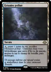 Estuaire pollué, comme tous les fetchlands, est un incontournable des bases de mana. Ces terrains sont particulièrement efficaces dans ce deck puisqu'ils vous assurent d'avoir au minimum un terrain à renvoyer à chacun de vos tours grâce à votre Commandant.