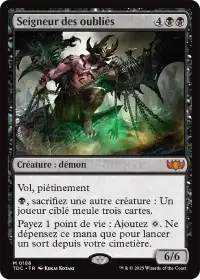 Teval, la balance équilibrée est une 4/4 vol qui nous meule de 3 cartes à chaque fois qu'elle attaque, avant de ramener sur le champ de bataille engagée, une carte terrain depuis le cimetière.