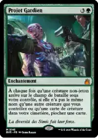 Projet Gardien vous permet de piocher une carte à chaque fois qu'une créature non-jeton arrive sous votre contrôle. C'est donc une très importante source de pioche dans votre stratégie basée sur les créatures.