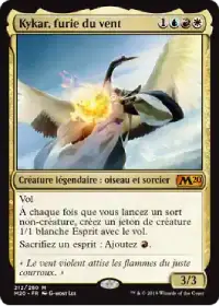Kykar, furie du vent vous fournit un jeton 1/1 avec le vol à chaque fois que vous lancez un sort non-créature. Ces jetons peuvent être sacrifiés pour produire un mana rouge. Les jetons ainsi créés sont une source de mana qui vous aident à lancer vos futurs sorts et peuvent également devenir une véritable condition de victoire.