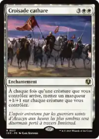 Croisade cathare est un classique des jeux à base de jetons. Chaque créature arrivant en jeu sous votre contrôle vous permet de mettre un marqueur +1/+1 sur chacune de vos créatures, créant ainsi une armée rapidement très imposante.