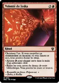 Volonté de Jeska s'intègre particulièrement bien à la stratégie de ce deck en vous fournissant de nombreux manas rouges et en vous donnant davantage de cartes à jouer. C'est une cible de choix à copier grâce à votre Commandant.