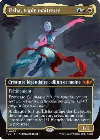 Elsha, triple maîtresse est la commandante alternative de ce deck. Contrairement à Shiko, elle vous demande de jouer un nombre élevé de sorts pour pouvoir profiter de la prouesse.