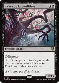 Arbre de la perdition est une 0/13 avec le défenseur. Sa capacité vous permet d'échanger son endurance contre le total de points de vie d'un adversaire. Vous pouvez donc faire perdre les 2 tiers des pvs d'un adversaire avant d'attaquer avec une créature capable d'infliger 40 dégâts en combat.