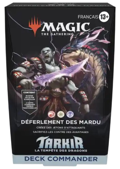Déferlement des Mardu est un deck Rouge / Blanc / Noir avec une stratégie autour des jetons de Créature. Son Commandant Zurgo crée lui même des jetons grâce à la capacité mobilisation et nous permet également de piocher ou d'infliger des dégâts lorsque des jetons meurent.