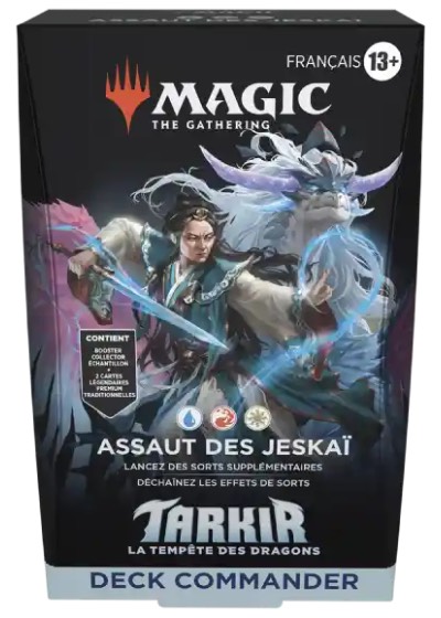 Assaut des Jeskaï est un deck Bleu / Rouge / Blanc qui vise à lancer au moins 2 sorts à chaque tour pour bénéficier de la capacité de Rafale de son Commandant et ainsi copier des sorts et piocher des cartes.