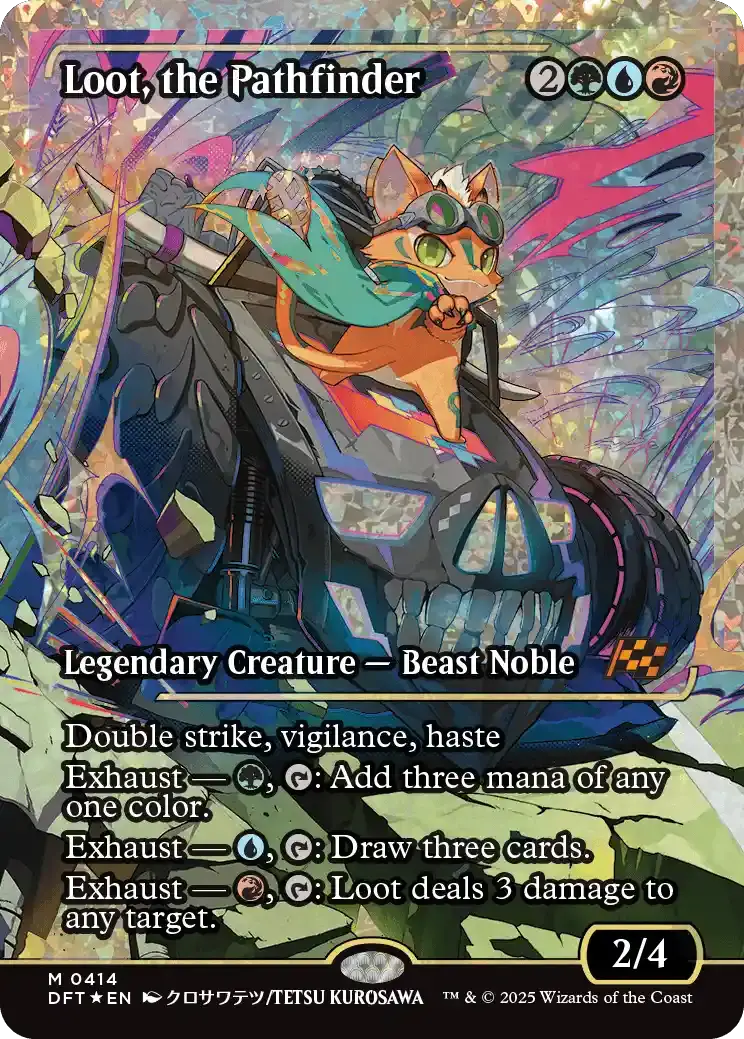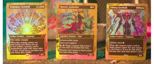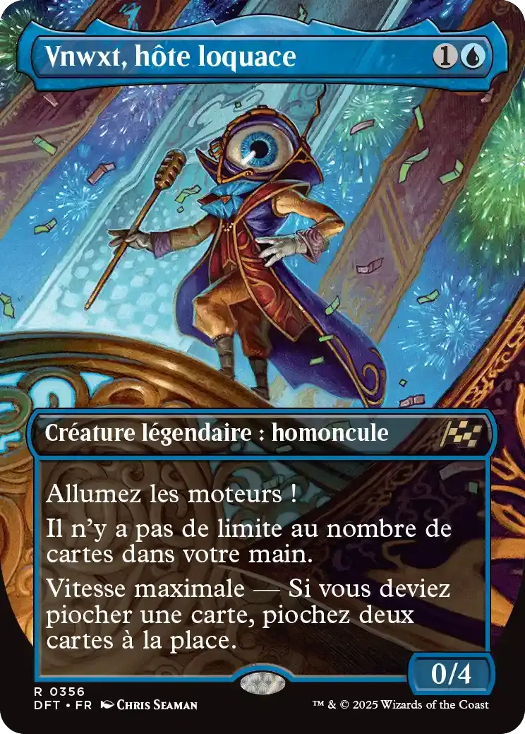 Cartes sans bordures, édition sérialisée, variantes sans bordures et même Box Toppers : Aetherdrift possède une multitude de versions alternatives de cartes pour personnaliser vos decks de la plus belle des manières.