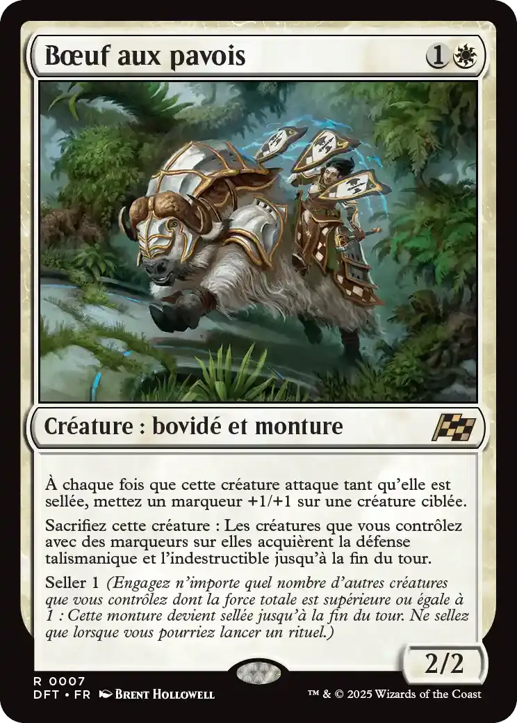 Par exemple, le Boeuf au pavois possède une capacité qui se déclenche lorsqu'il attaque si il est sellé.