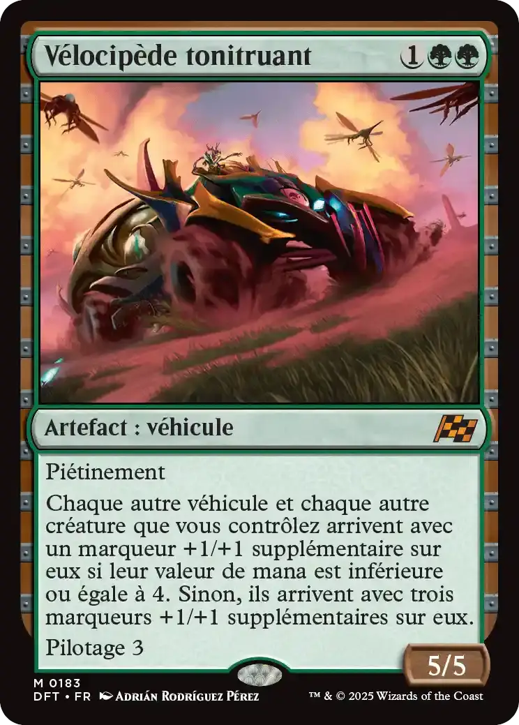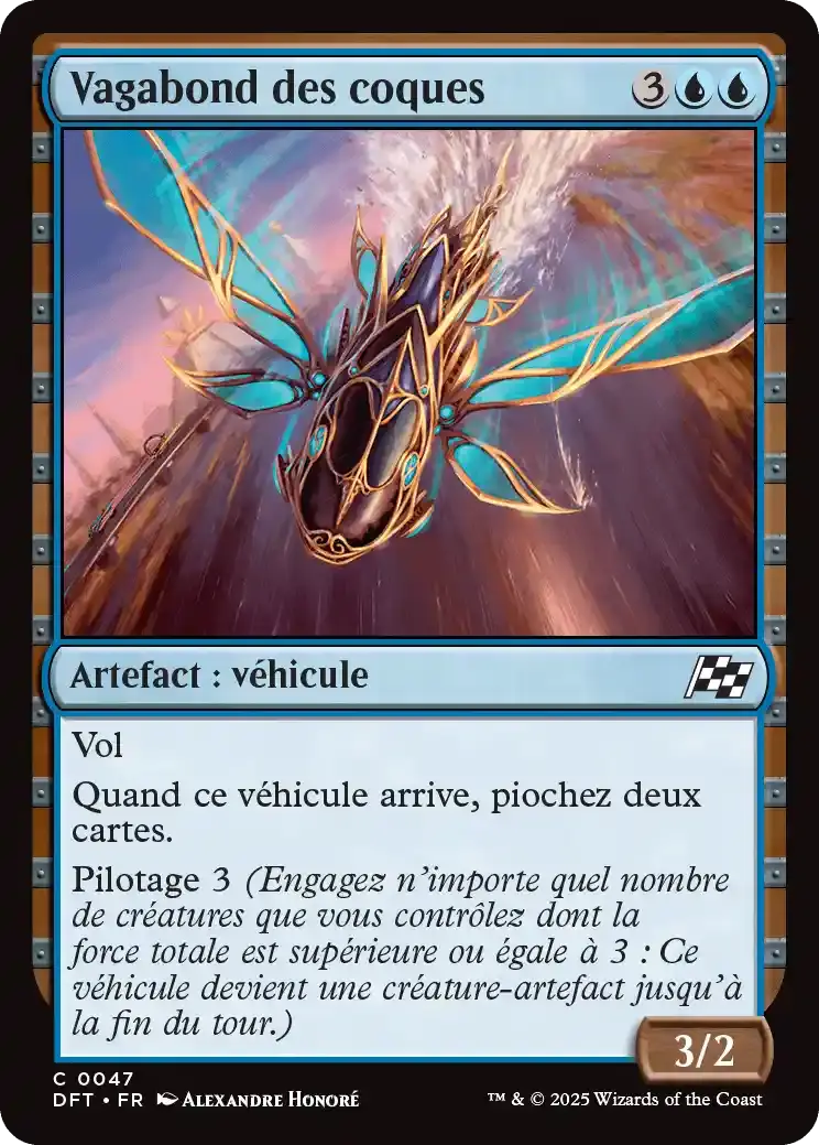 Véhicule et Pilotage : Les véhicules sont très présents en Aetherdrift. Lorsque vous les jouez ce sont de simples artefacts qui ne sont pas des créatures.