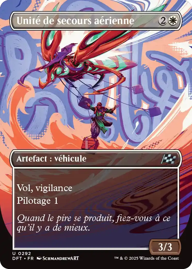 Aetherdrift est la première édition de l'année 2025 à rejoindre le format Standard. Aux commandes d'un des nombreux véhicules de l'édition, participez à une course contre la mort à travers le multivers pour remporter un prix extraordinaire !