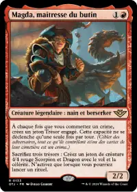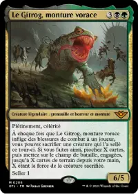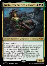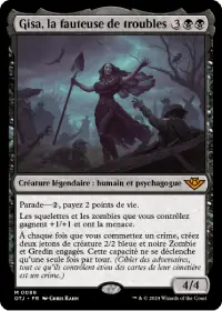Si vous arrivez à commettre un crime en ciblant un adversaire, une de leurs cartes en jeu ou au cimetière, Gisa arrive en jeu en tant que 4/4, accompagnée de 2 jetons 3/3 avec la menace.