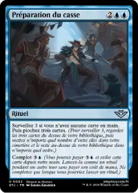 Certaines cartes ont des coûts de complot moins élevés que leurs coûts de mana ou des coûts tout simplement différents. Par exemple, Préparation du casse à un coût de mana et un coût de complot de 4, mais le complot ne nécessite qu'un seul mana bleu.