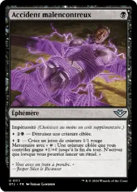 La valeur de mana d'un sort avec impétuosité est calculée uniquement en fonction de son coût de mana. Les coûts supplémentaires ne sont pas pris en compte. Affrontement final et Accident malencontreux auront toujours un coût de mana de 1.