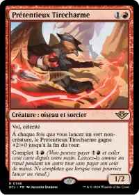 Prétentieux Tirecharme est une 1/2 avec le vol et la célérité pour 2 manas. Il gagne +2/+0 jusqu'à la fin du tour pour chaque sort non-créature que vous jouez.
