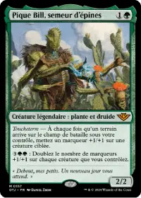 Pique Bill est une 2/2 pour 2 manas qui met un marqueur +1/+1 sur une créature ciblée à chaque fois qu'un terrain arrive en jeu sous votre contrôle.