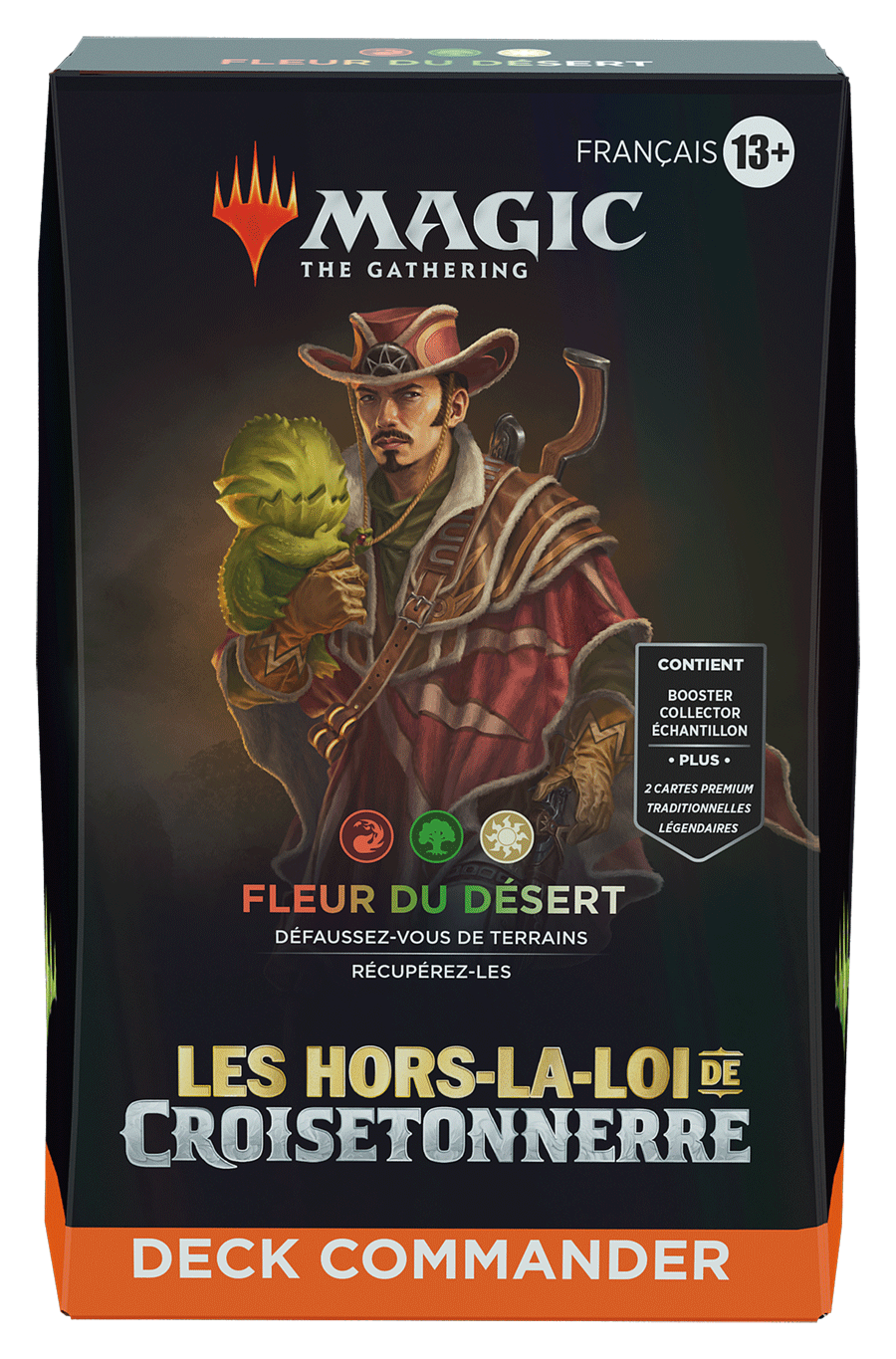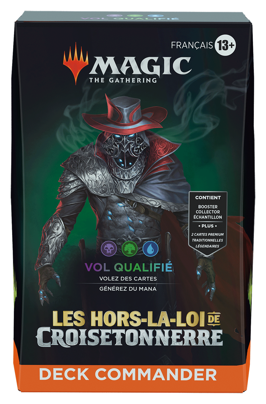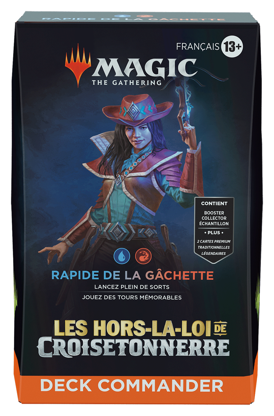 L'édition comporte 4 nouveaux decks Commander. En dehors des decks eux-mêmes, vous pouvez retrouver ces cartes commander dans les boosters Collectors Les hors-la-loi de Croisetonnerre.