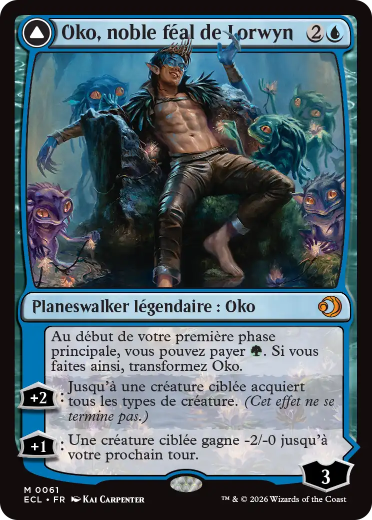 Oko est présent en Lorwyn éclipsé sous la forme d'un Planeswalker recto-verso ! Il revient sur Lorwyn / Sombrelande, son plan d'origine. C'est l'occasion d'en apprendre davantage sur son histoire.