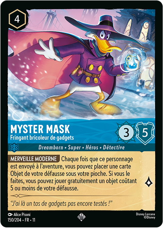 Myster Mask et Flagada Jones débarquent dans Lorcana ! Découvrez de nouvelles cartes à l’effigie du justicier masqué et de l’aviateur apparu à l'origine dans la série d'animation La Bande à Picsou.