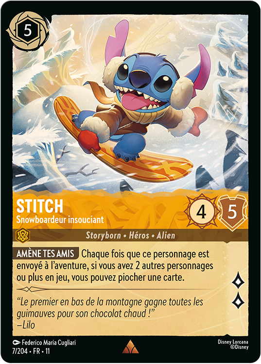 Le Coffret Démarrez votre collection est idéal pour vous lancer dans la collection du chapitre 1. Vous y trouvez 1 carte promo Stitch - Snowboarder insouciant, 4 boosters de l'édition Givresort en français, un petit Portfolio au format A5 et un livret pour vous guider dans votre collection.