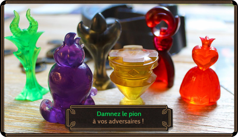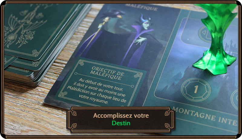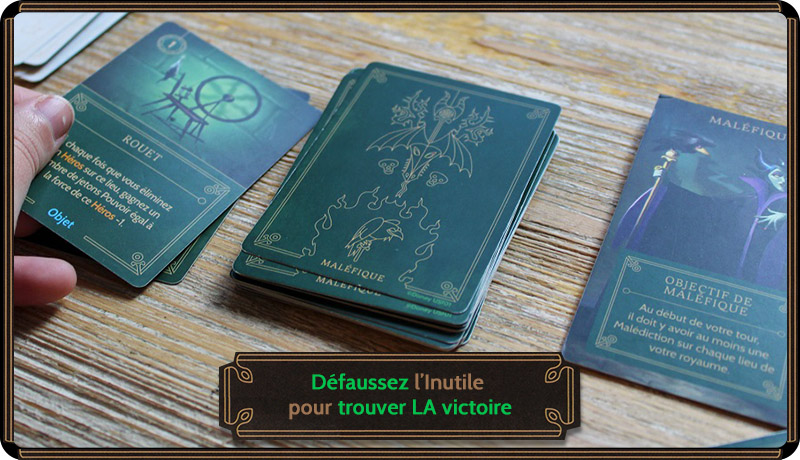 Pour remporter la partie, vous devrez accomplir l’objectif unique de votre vilain. Maléfique doit répandre ses Malédictions sur tous les lieux du Royaume, tandis que Prince Jean va chercher à accumuler 20 jetons Pouvoir.
