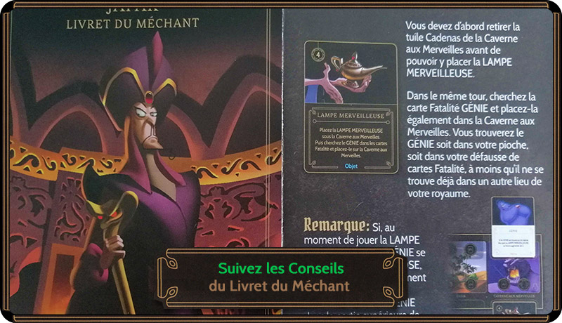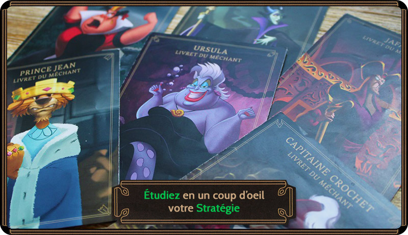 Chaque Méchant est accompagné d’un guide stratégique qui vous indique ses objectifs, ses cartes importantes et quelques astuces à mettre en place lors de votre partie avec lui.