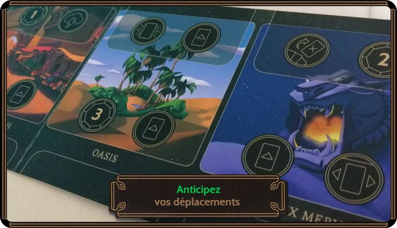 À chaque tour vous devez vous déplacer sur un nouveau lieu, ce qui veut dire que certaines actions ne seront plus disponibles pour votre prochain tour. Essayez de réfléchir aux lieux que vous allez visiter en amont. Il est important d'établir un carnet de route précis pour éviter de perdre un tour.