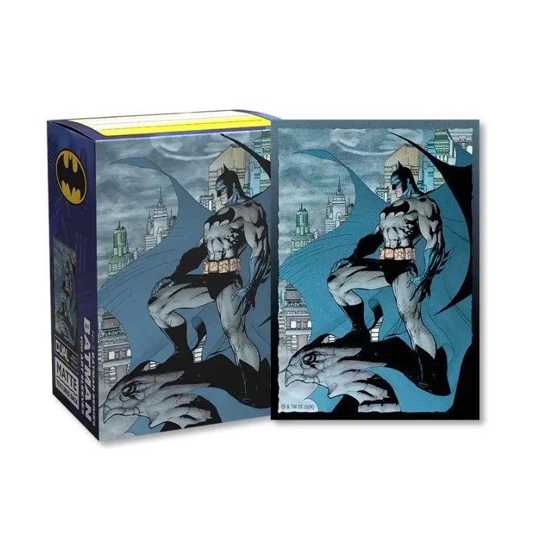 La marque Dragon Shield propose de nombreuses pochettes aux différentes textures. Les pochettes Dual Matte possèdent un dos texturé qui permet d'éviter que les pochettes n'accrochent entre elles. L'intérieur de la pochette est de couleur noire afin de faire ressortir vos cartes. Ces pochettes mettent en scène le légendaire défenseur de Gotham City : Batman.